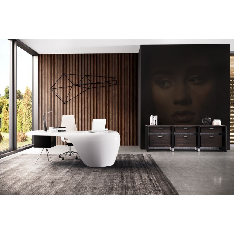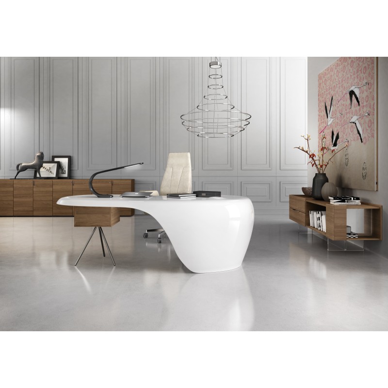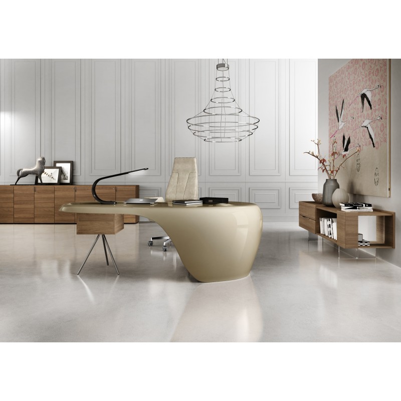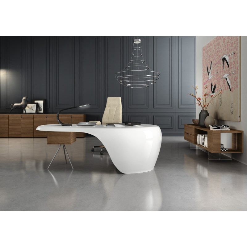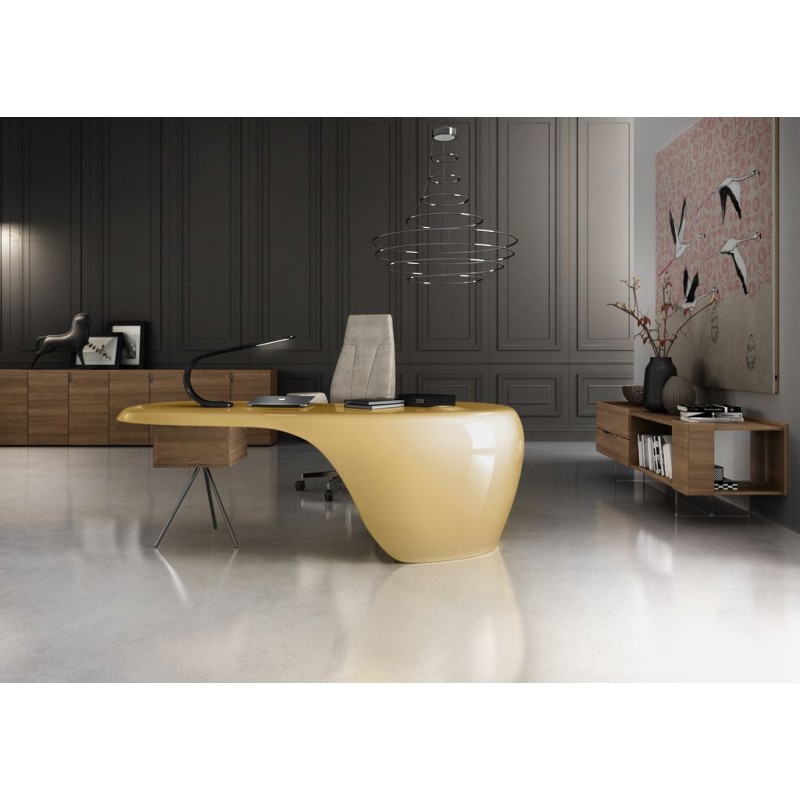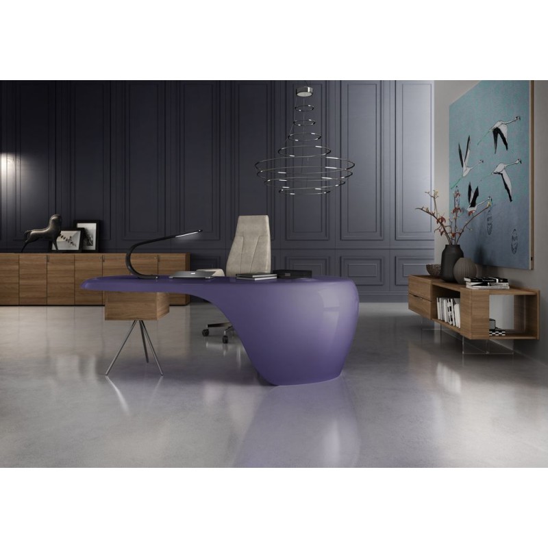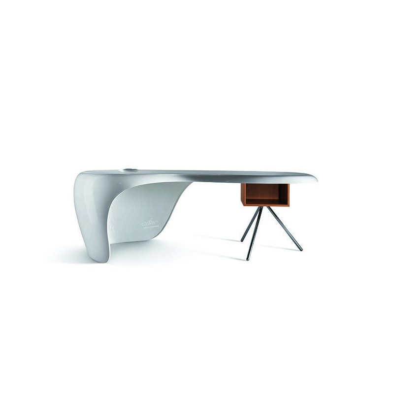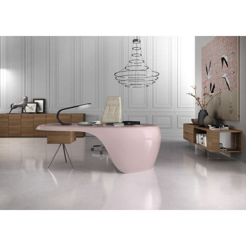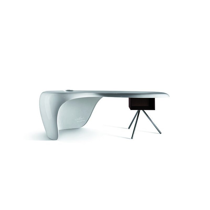 Le bureau ZERO (cm 210x90x75h) a une coque autoportante réalisée par résines thermodurcissables et renforcées avec fibre de verre. Il est possible de le laquer par vernis POLI ainsi que MAT GAUFRÉ, au couleurs Blanc nuage, Rose timide, Noir tempête, Vert frais, fleur d’Oranger. Disponible aussi une gamme de couleurs MÉTALISÉS : Or du matin, Réverbération de l’eau, Azur libre.