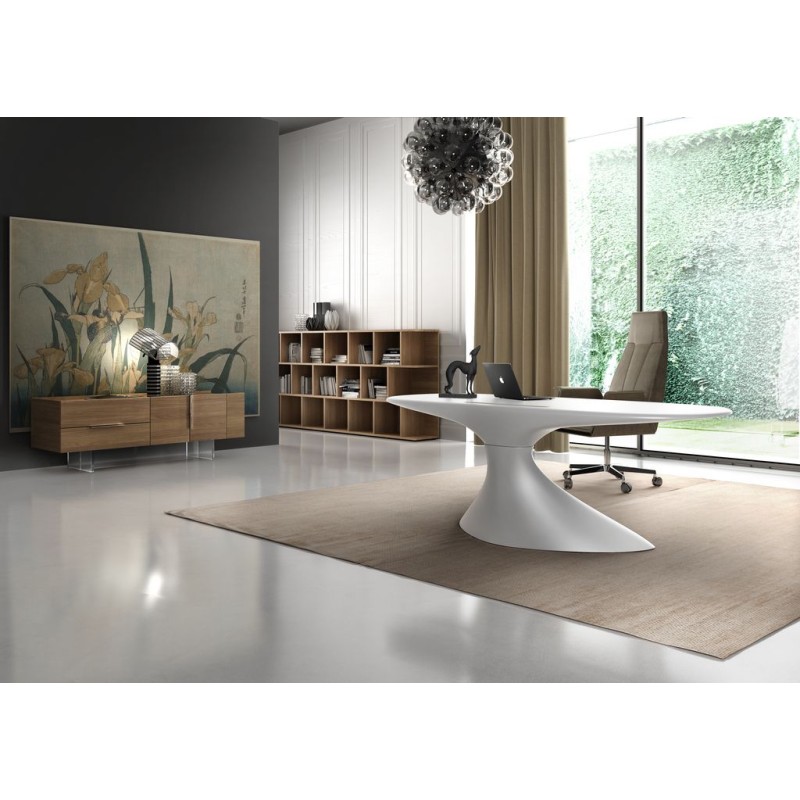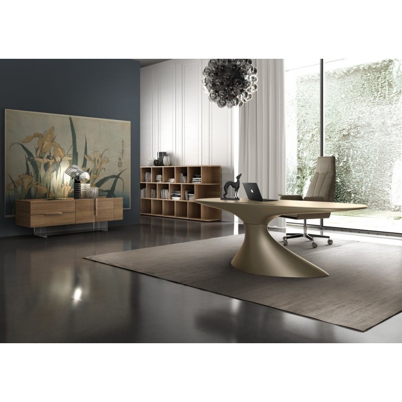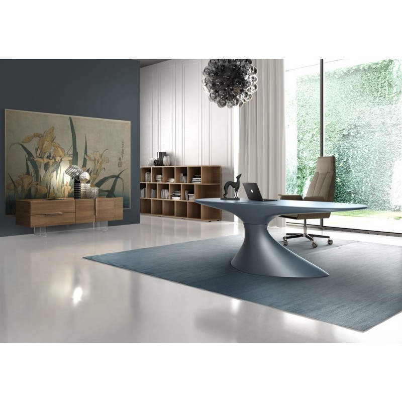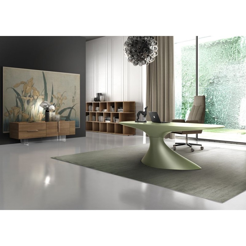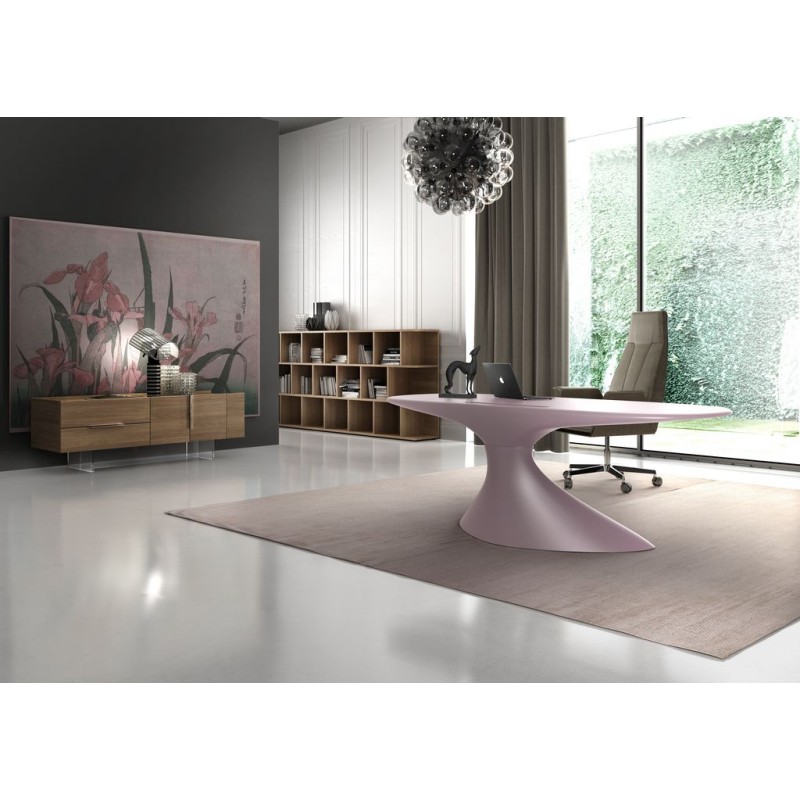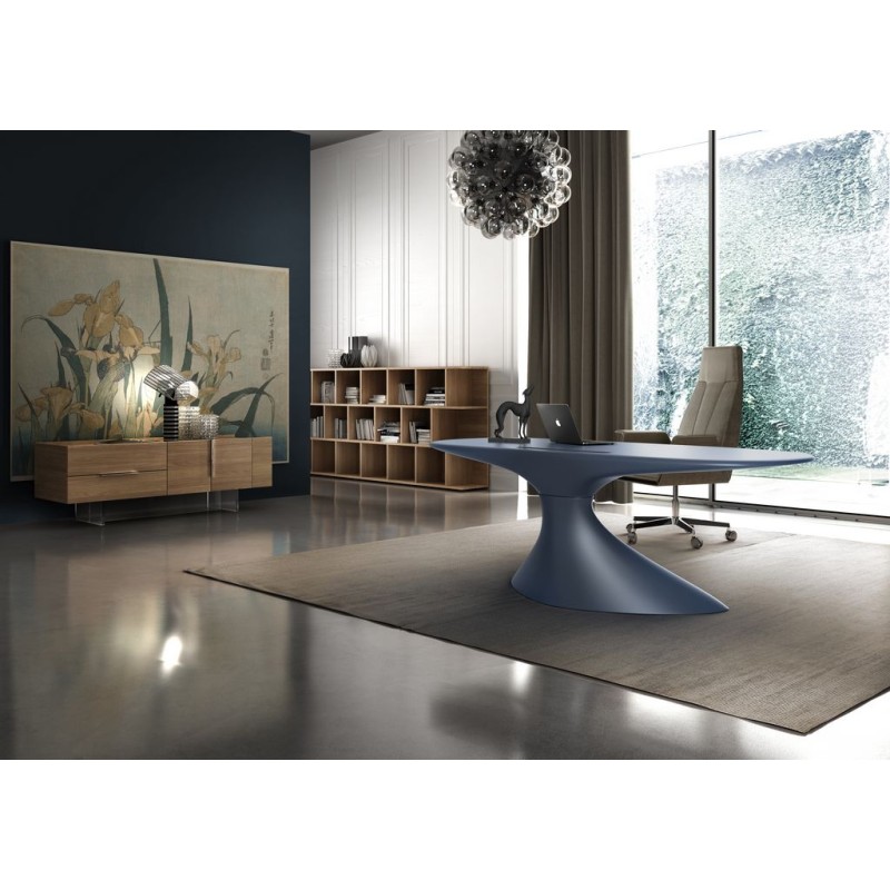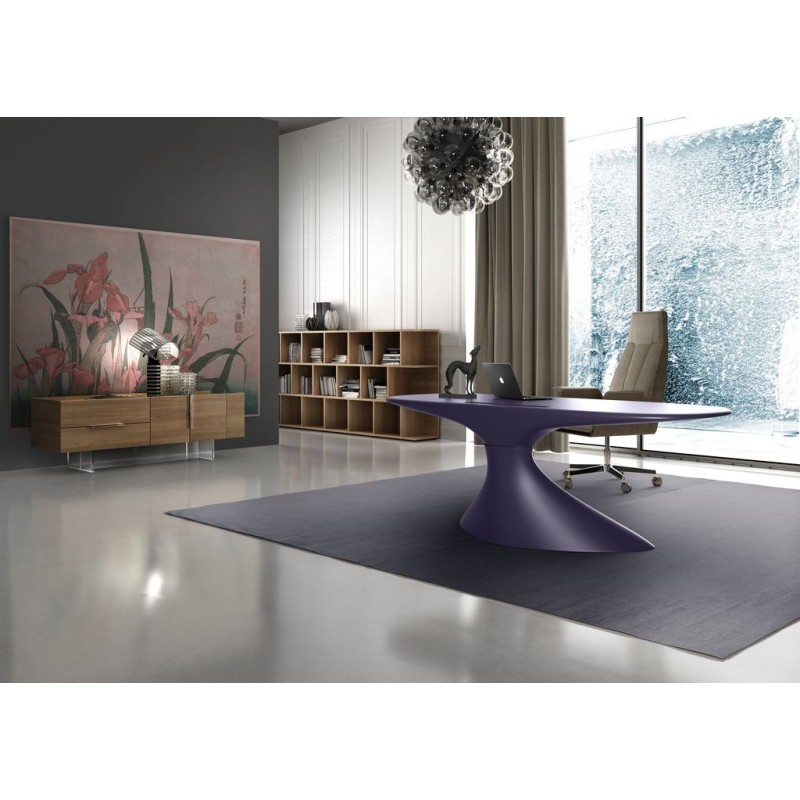 Le bureau ZERO (cm 210x90x75h) a une coque autoportante réalisée par résines thermodurcissables et renforcées avec fibre de verre. Il est possible de le laquer par vernis POLI ainsi que MAT GAUFRÉ, au couleurs Blanc nuage, Rose timide, Noir tempête, Vert frais, fleur d’Oranger. Disponible aussi une gamme de couleurs MÉTALISÉS : Or du matin, Réverbération de l’eau, Azur libre.
