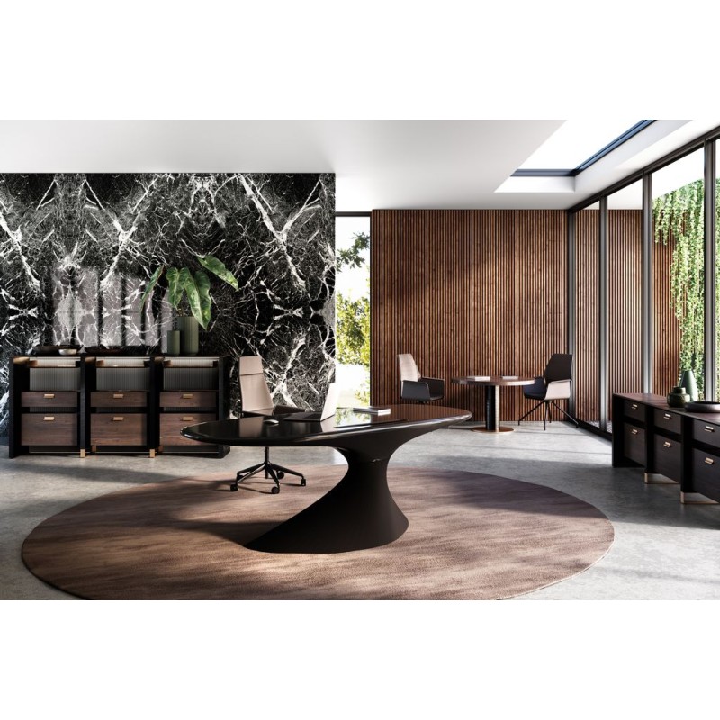 Design et élégance caractérisent le projet qui peut se distinguer grâce à forme et innovation. Innovation des matériaux utilisés, qui ne sont point évidents pour l’univers du bureau et justement pour cela très intéressants et permettent une collocation du produit même dans des endroits différents par rapport à ceux d’origine. L’ameublement d’intérieur aussi que de coins d’accueil, boutiques aussi que galeries deviennent espaces possibles pour l’emplacement de ce modèle.